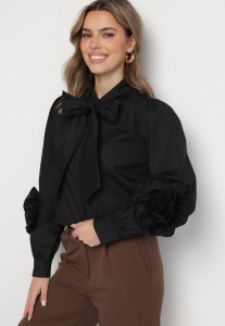 Koszula z wzorem kropek i wiązanym dekoltem czarna