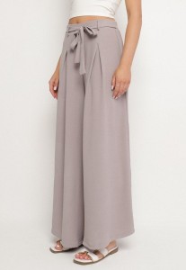 Czarne Szerokie Spodnie z Wiązaniem i Metalicznymi Aplikacjami Mairae