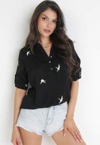 Koszulowa Bluzka z Pionowymi Plisami - Zielona