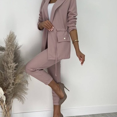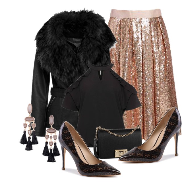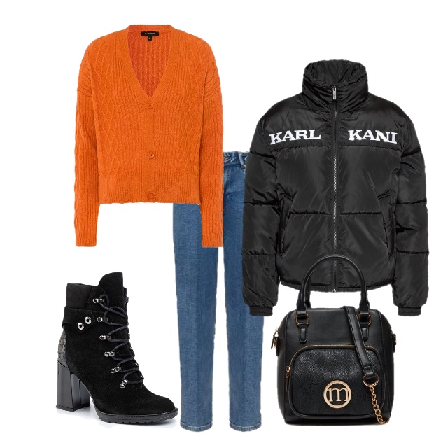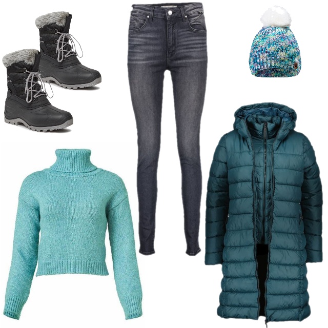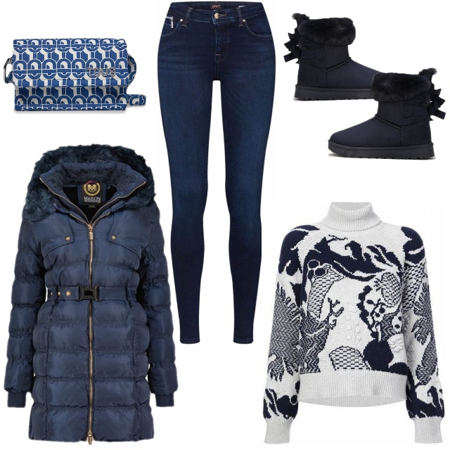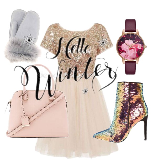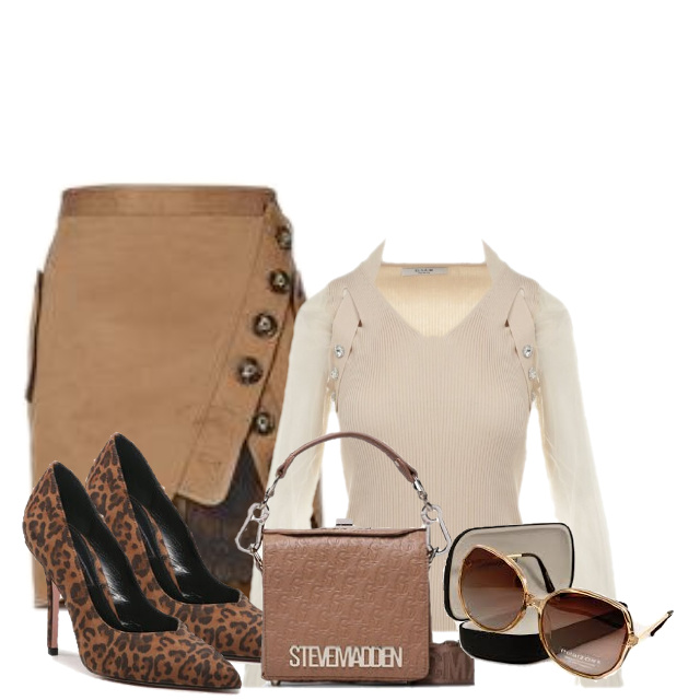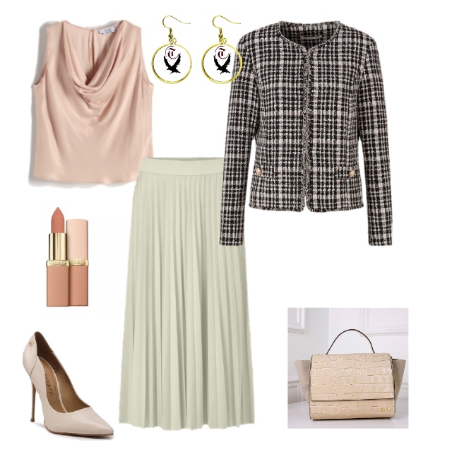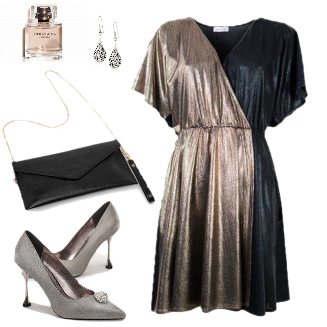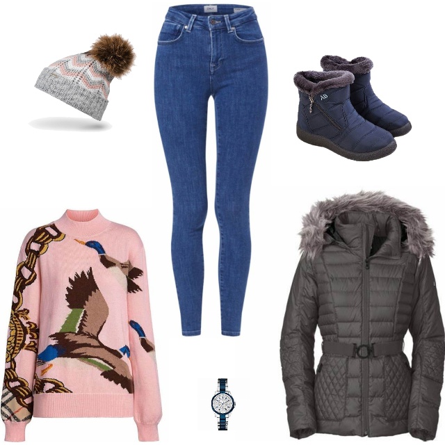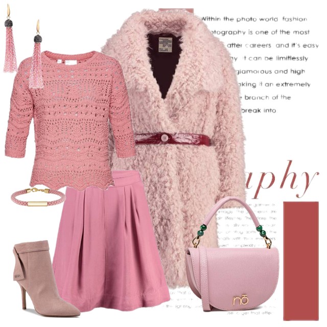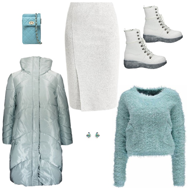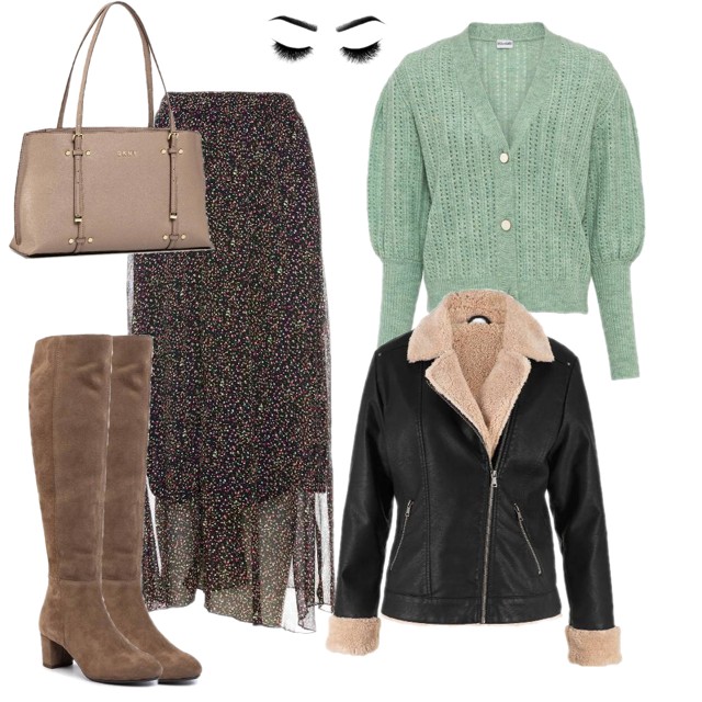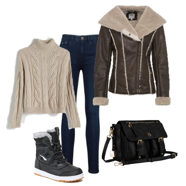 Brązowy płaszczyk z szarą dzianinowa sukienką